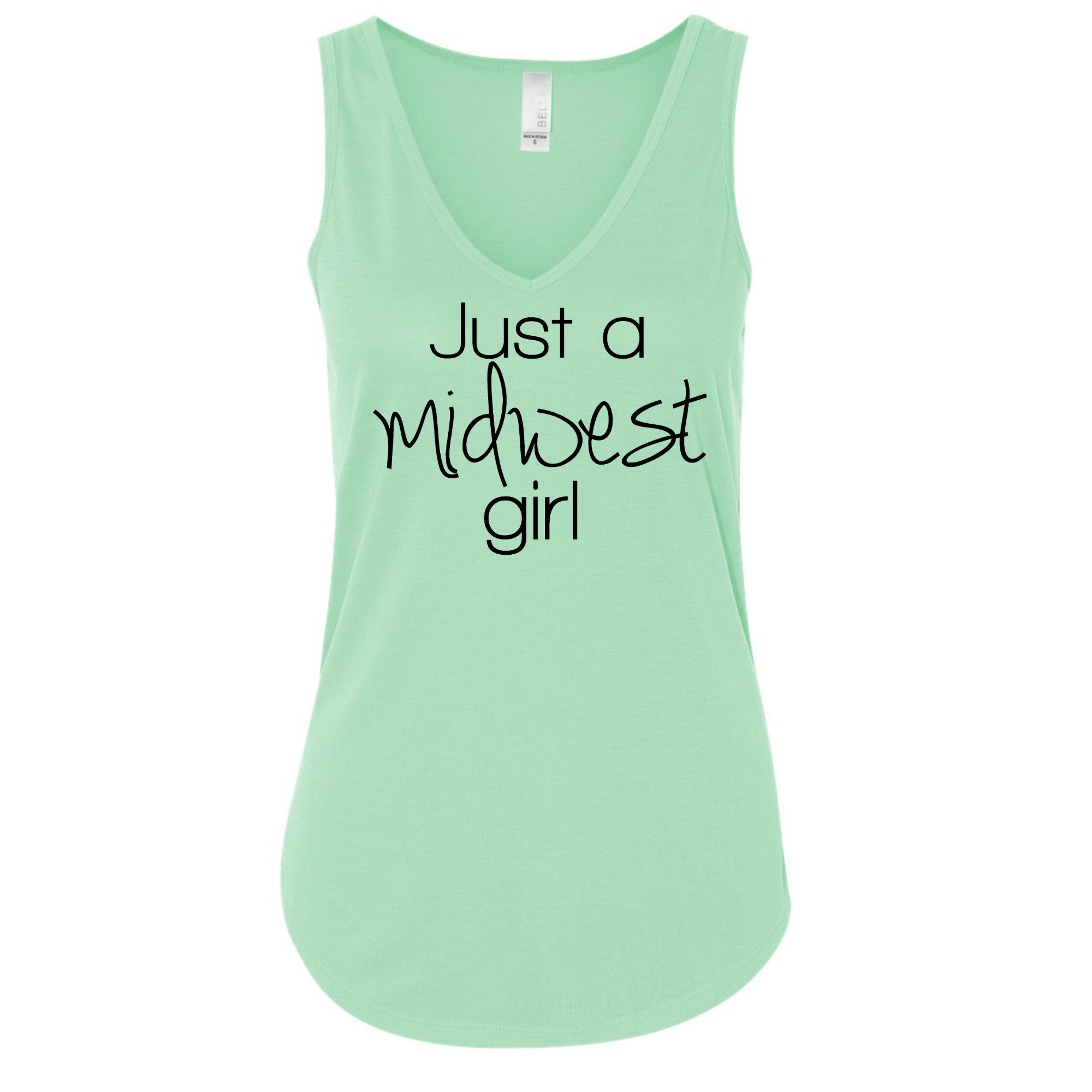 This mint flowy tank is a Bella & Canvas v-neck flowy tank (65/35 polyester/viscose blend) with black writing that is locally and professionally printed.