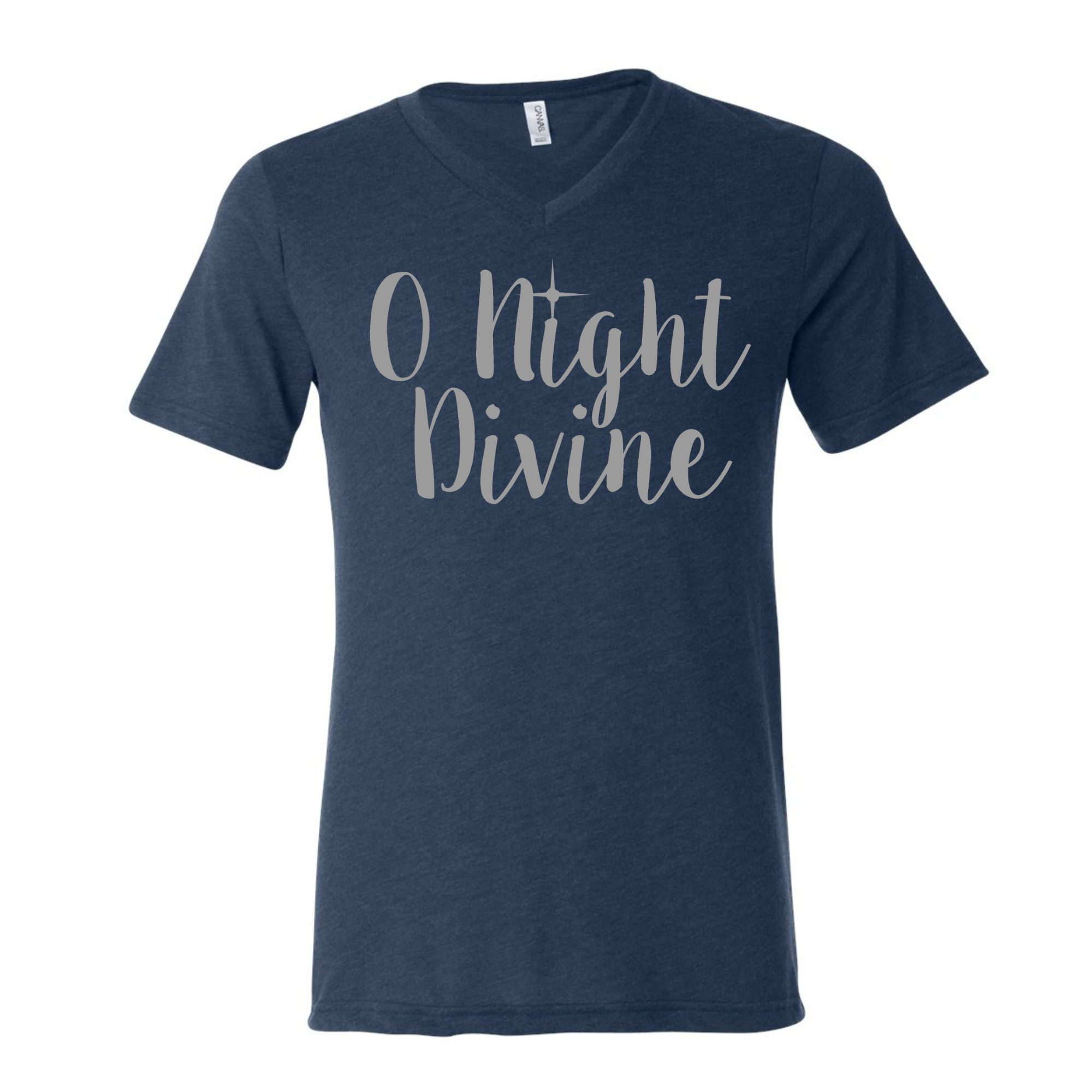 This shirt is a Bella & Canvas navy triblend unisex v-neck tshirt. The graphic will come in SILVER and not the gray that is shown. It is locally and professionally printed.