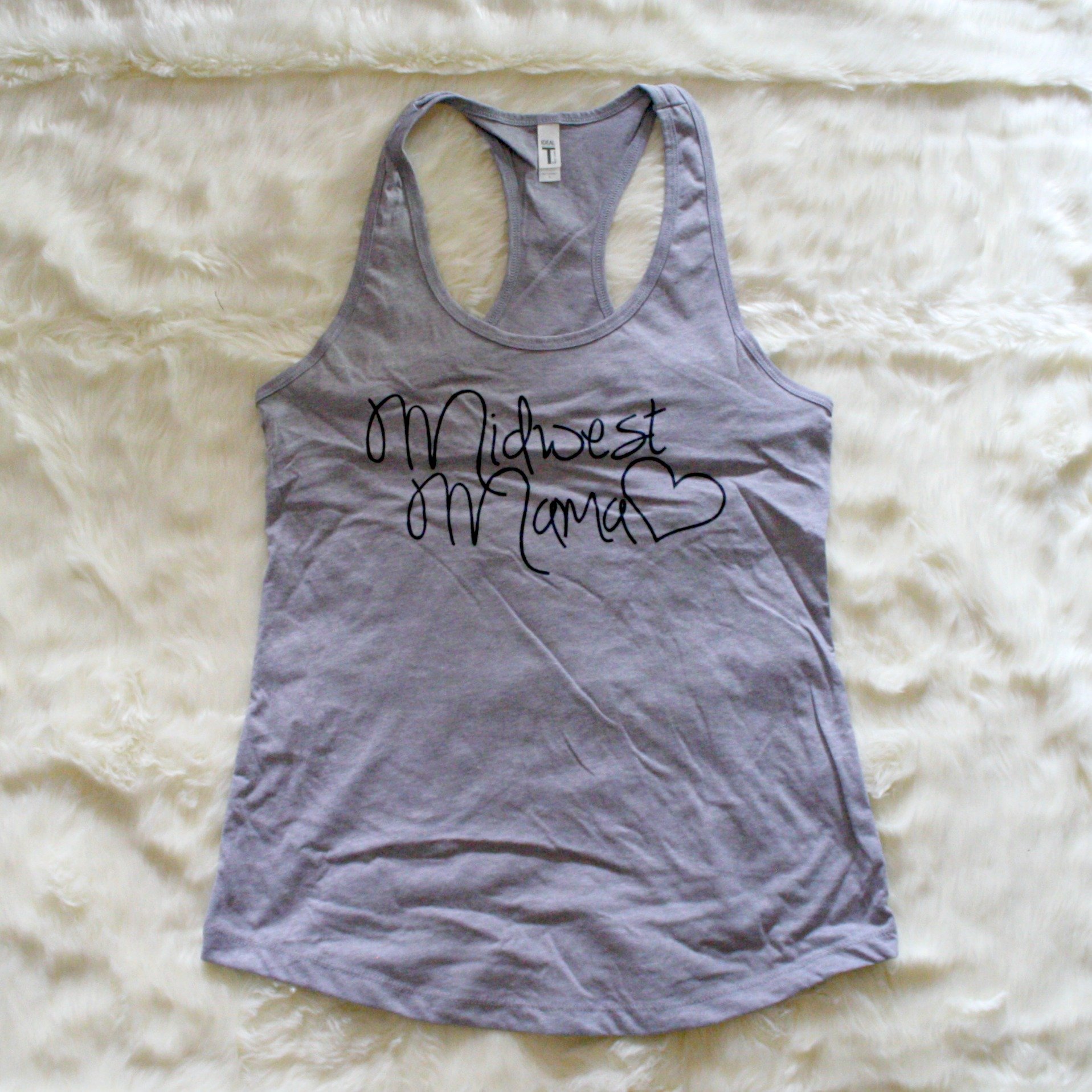 This ahtletic gray tank is a Next Level Ideal Racerback tank (60/40 combed ringspun cotton/polyester) with black writing that is locally and professionally printed.